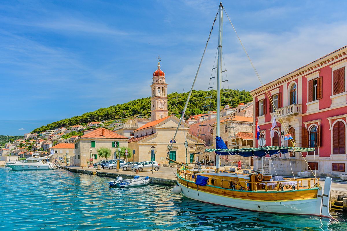 Auf der Insel Brač, die mit der Fähre von Split aus erreichbar ist, erwarten Sie traumhafte Strände wie Zlatni Rat in Bol sowie malerische Orte wie Supetar und Bol.