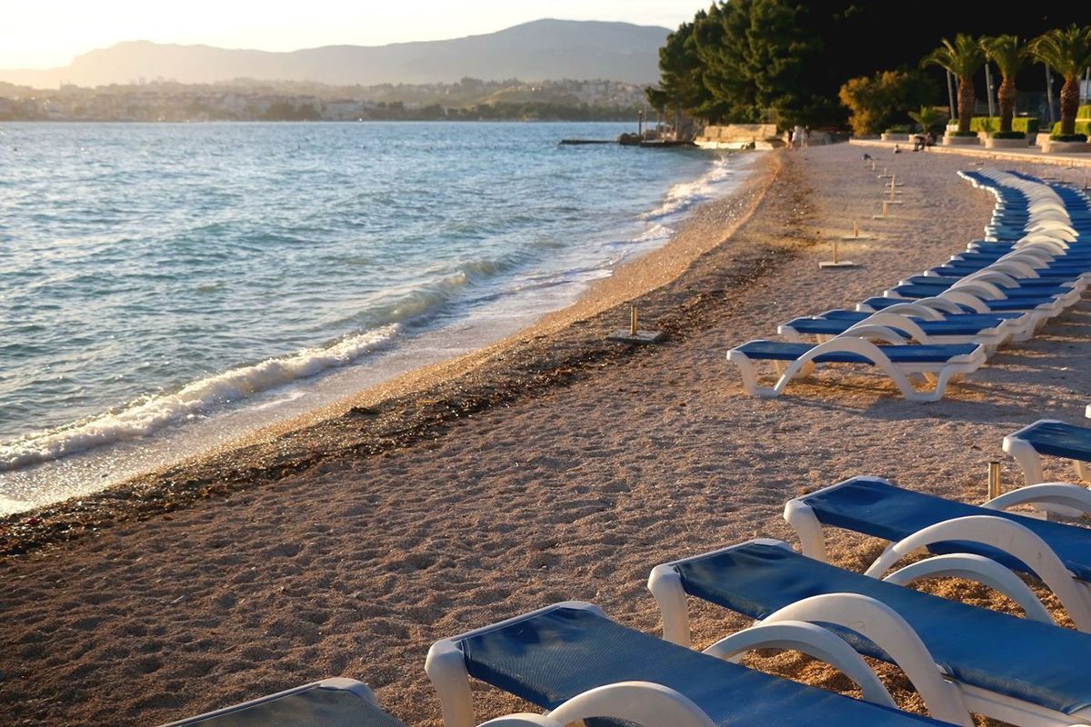Wunderschön gepflegter Strand mit kleinen Kieselabschnitten – ideal für Familien mit Kindern.